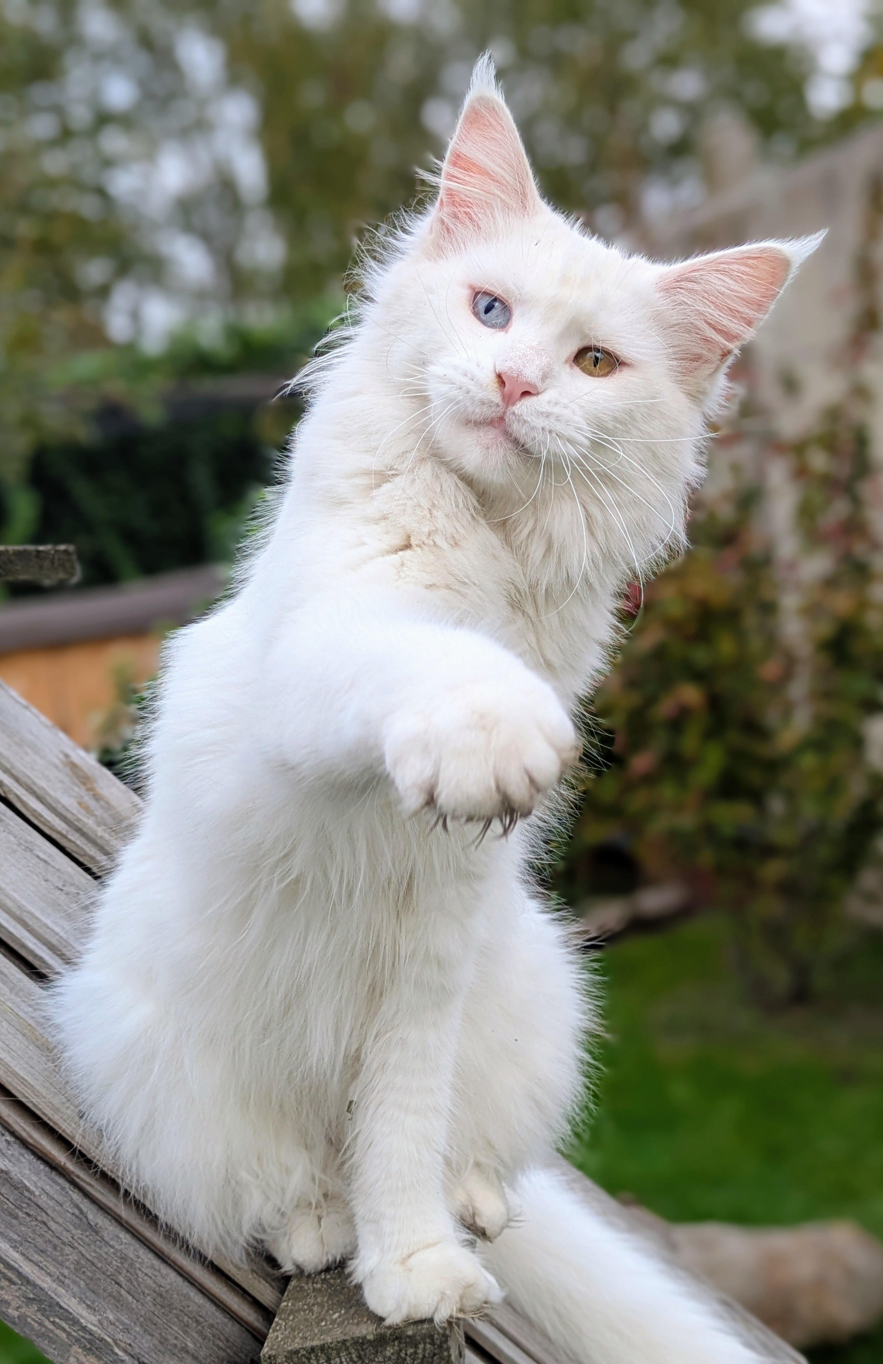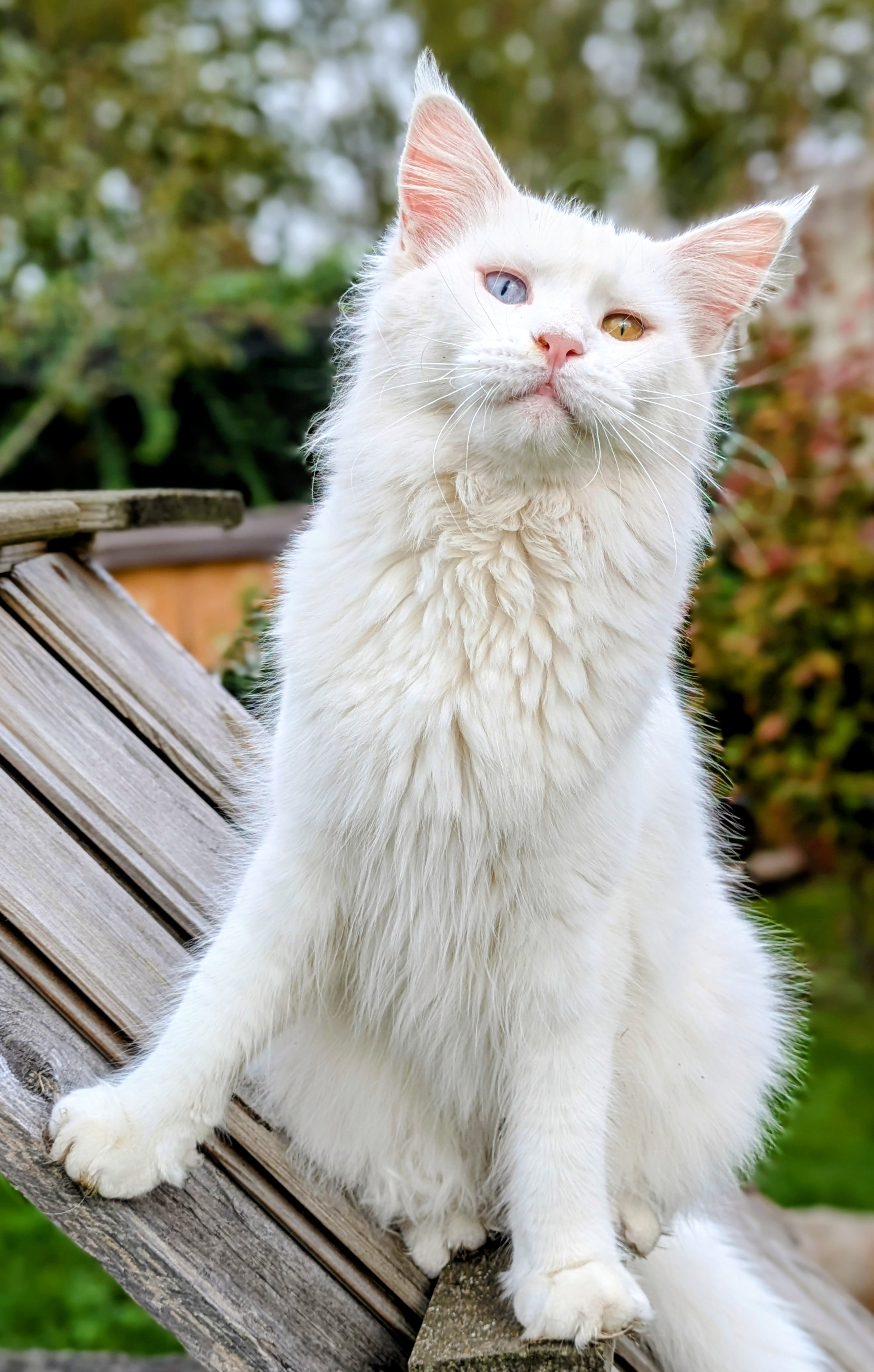 Je suis tombée sous le charme de sa belle robe blanche héritée de papa Mastok et de son regard vairon si intense !