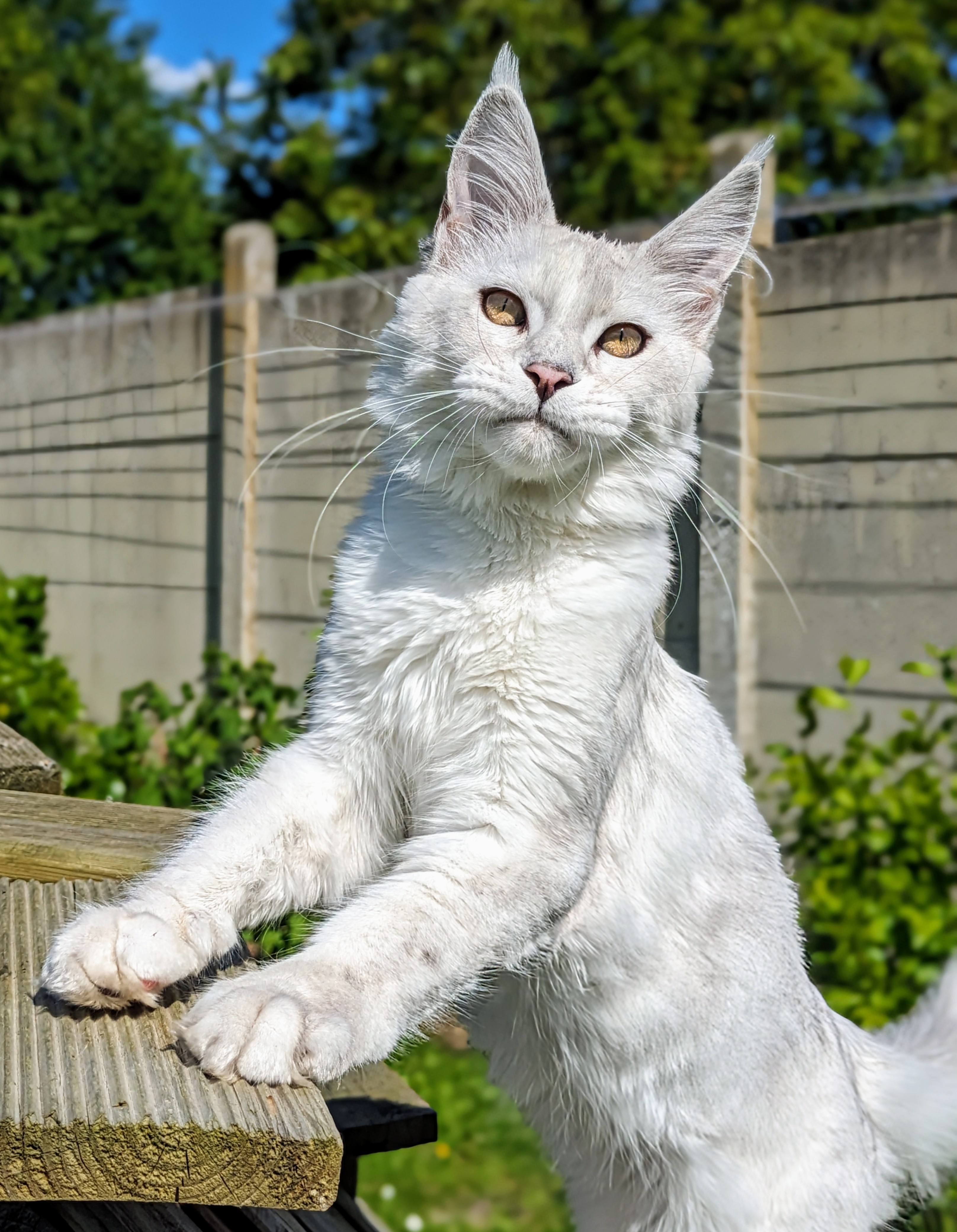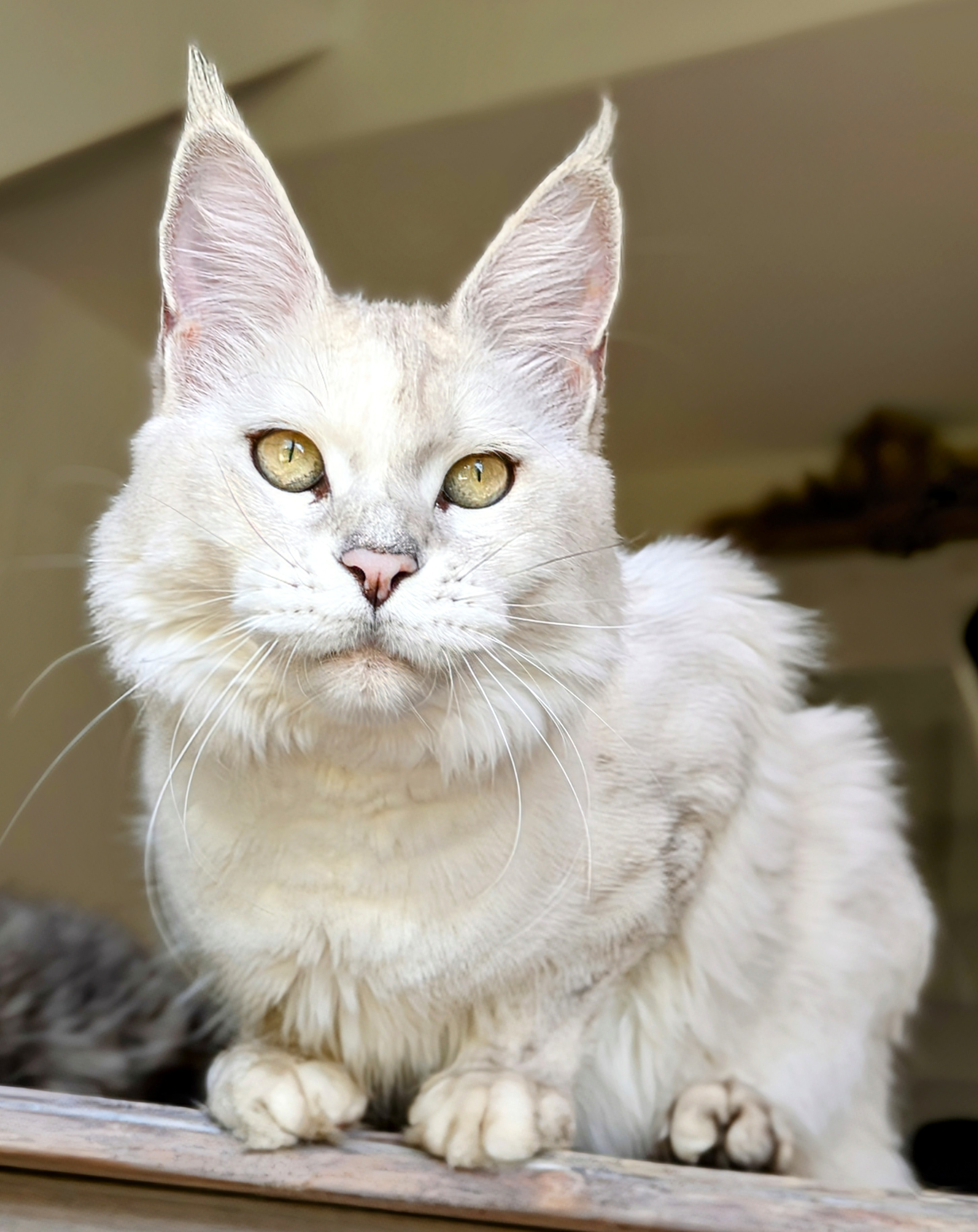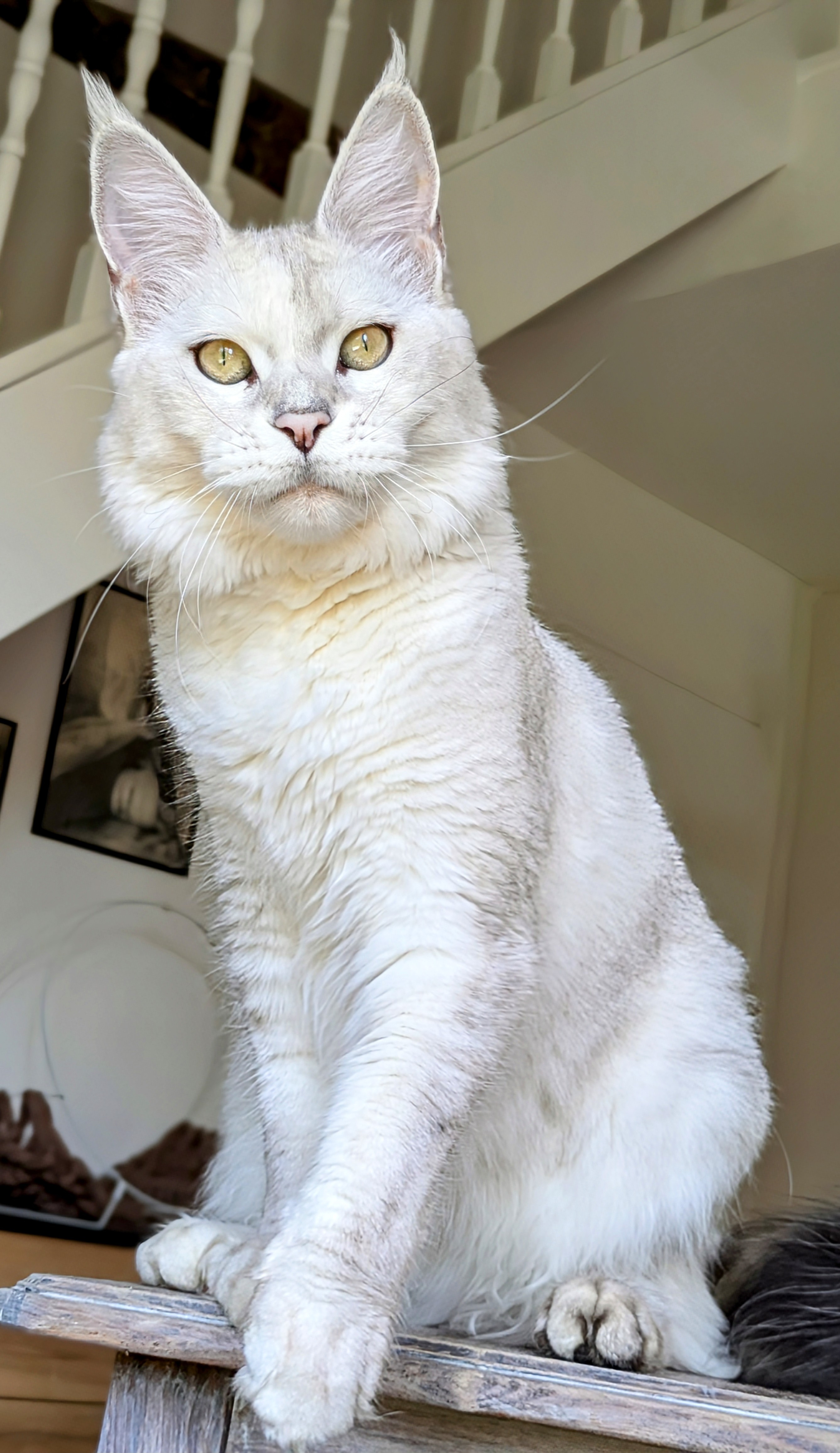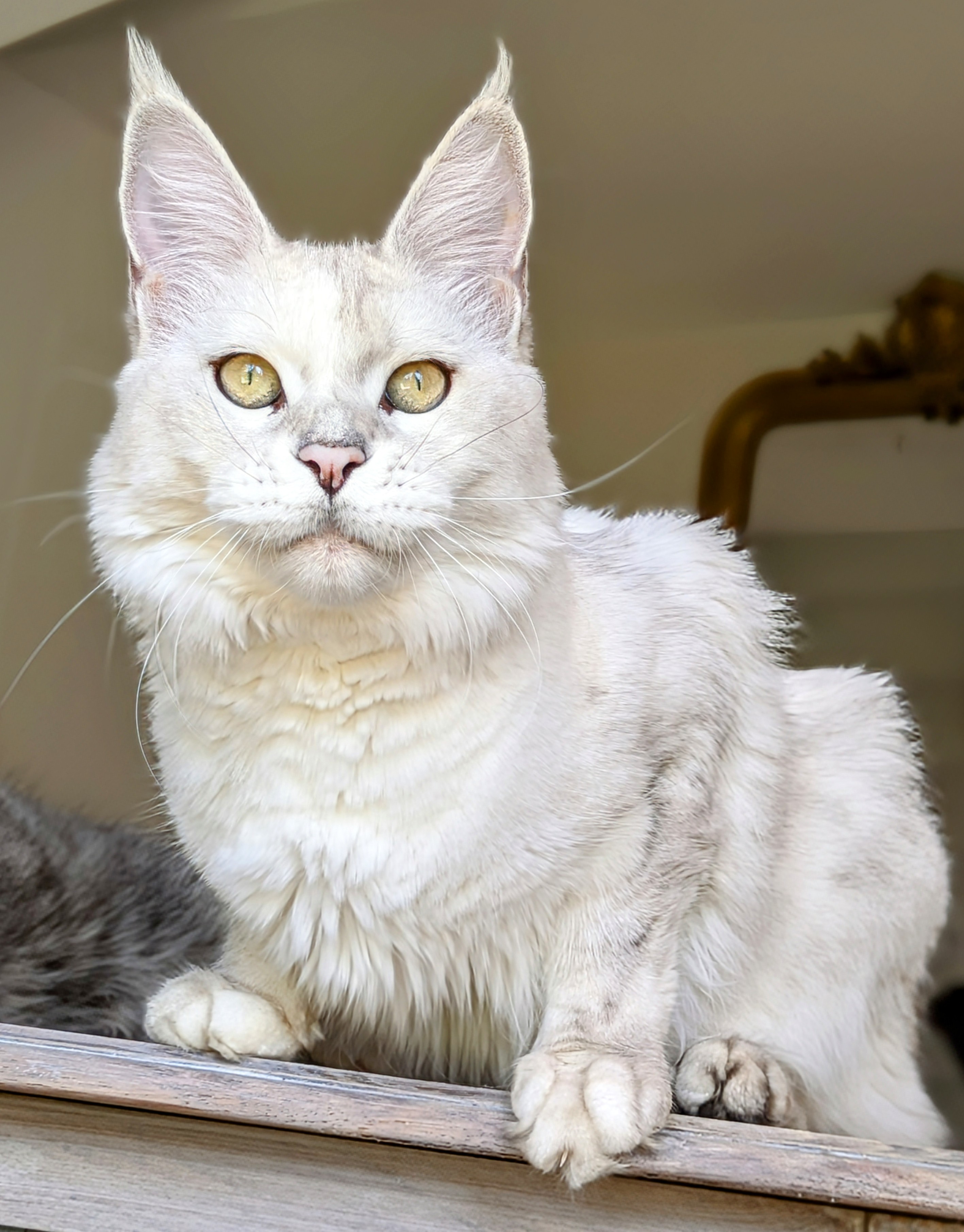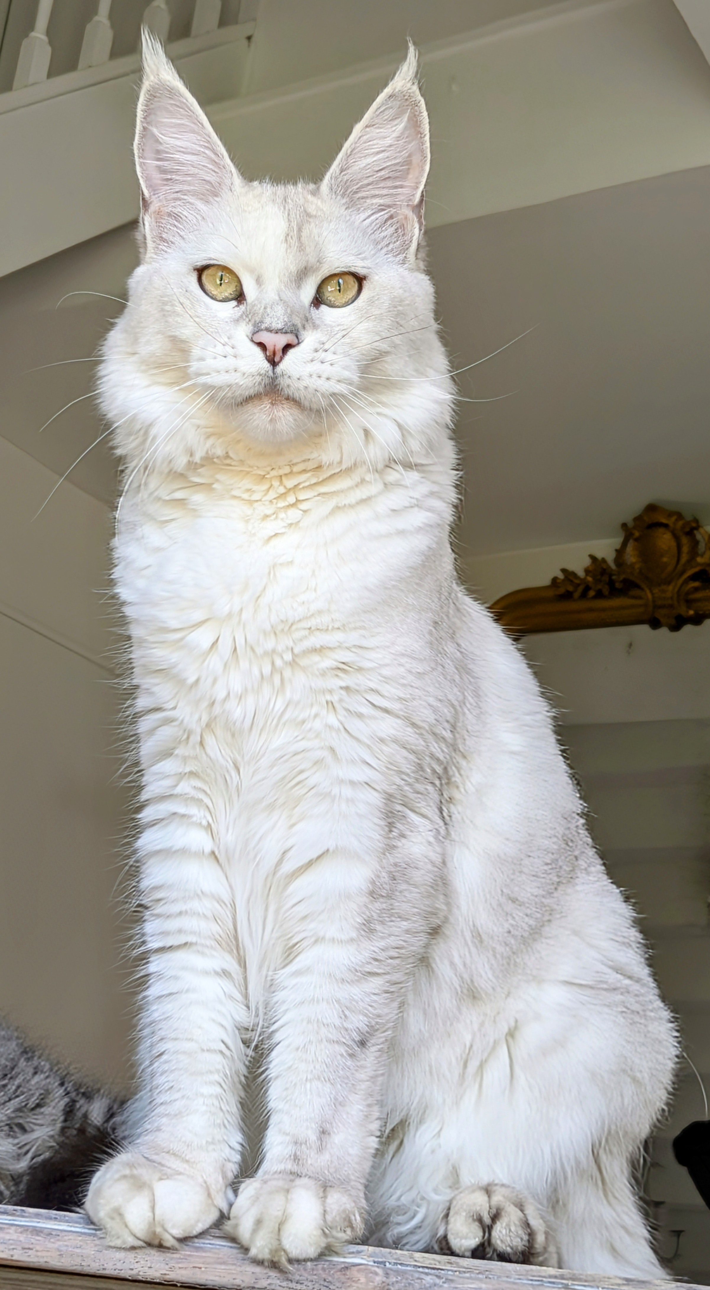 Upee est une chatonne répondant parfaitement aux critères du standard du maine coon avec un très joli profil, des oreilles très bien placées, un beau corps long et une expression à couper le souffle !